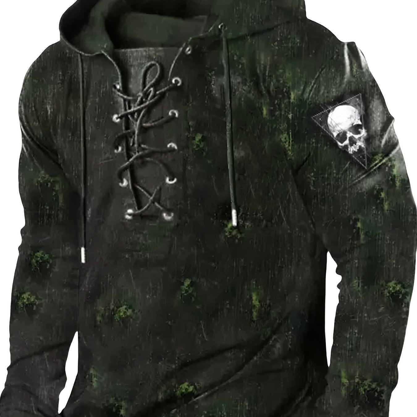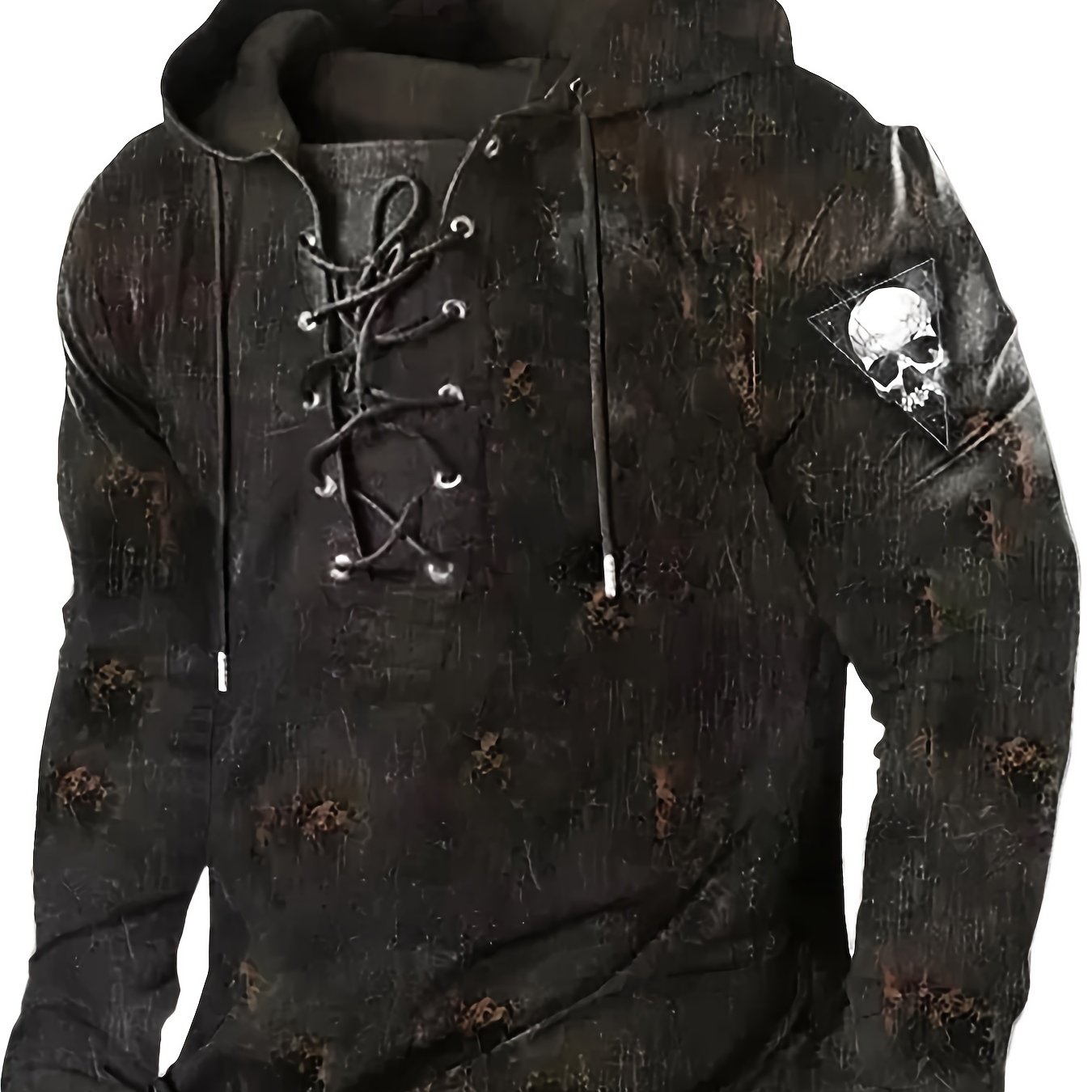 Retro Lace Up Gothic Style Hoodies For Men, Men’s Casual Graphic Design Hooded Sweatshirt Streetwear For Winter Fall, As Gifts