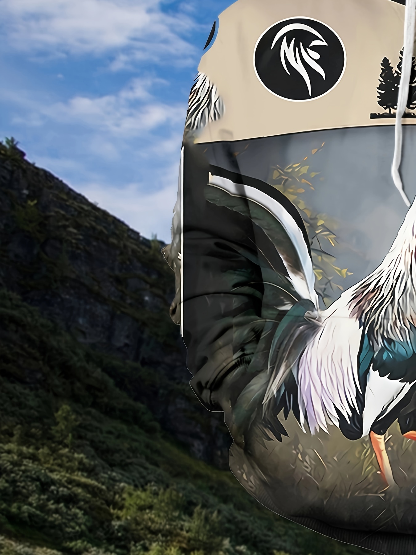 great Rooster Print Hoodie, Cool Hoodies For Men, Men’s Casual Graphic Design Hooded Sweatshirt Streetwear For Winter Fall, As Gifts
